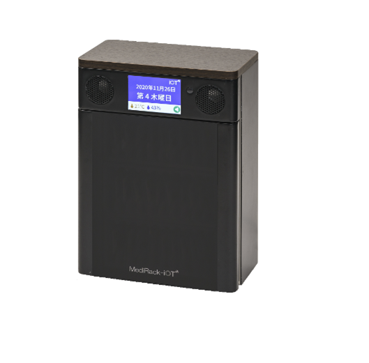 設定した時間になると服薬をお知らせ、服薬状況を離れた家族へメールで通知するお薬ラック