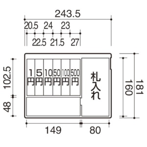 カウンター部分には10枚ごとに刻みが付いているので、コインの枚数を数える手間を省きます。