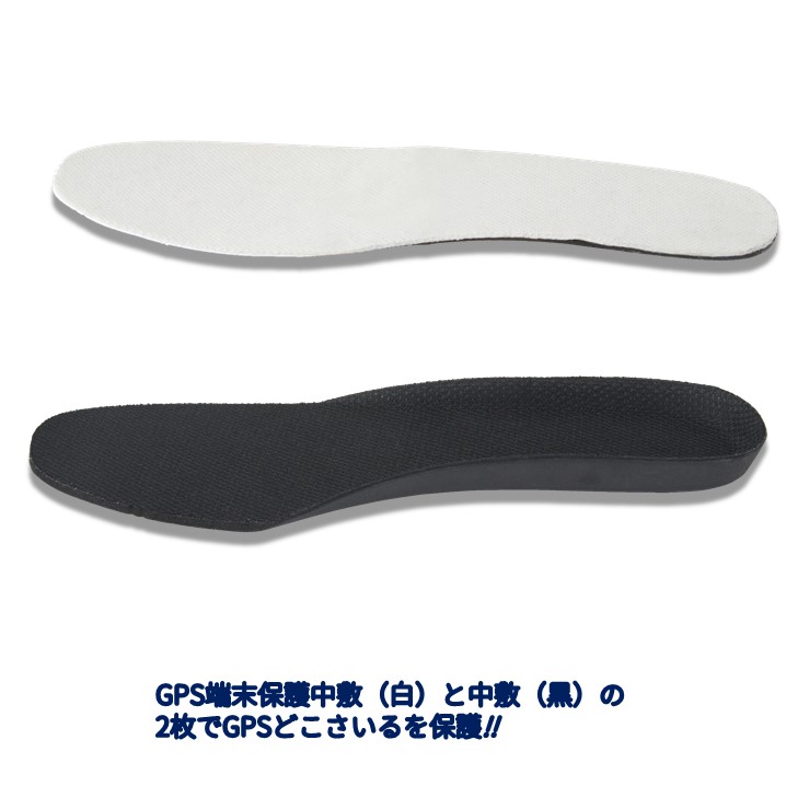 「GPSどこさいる」を歩行時の衝撃から守るために、厚みのある素材を採用したGPS端末保護中敷やプラスチックカバーを付属しています。併せて、防水のためにチャック式ポリバックを3枚付属しています。